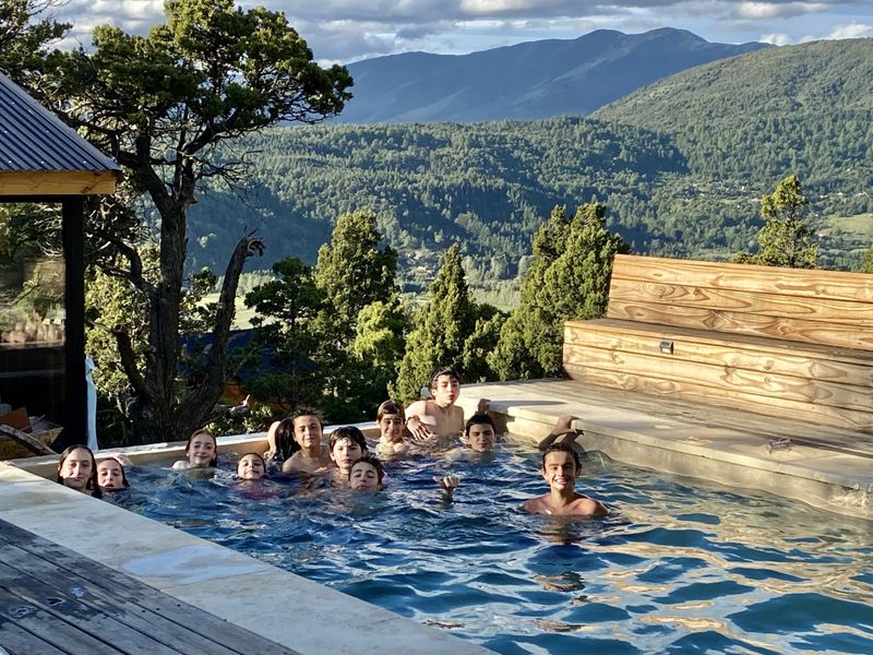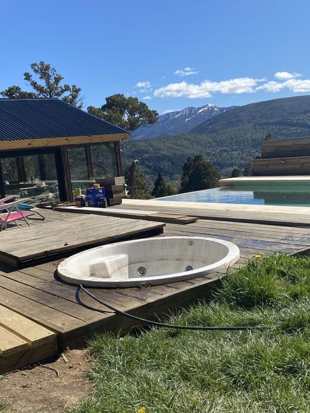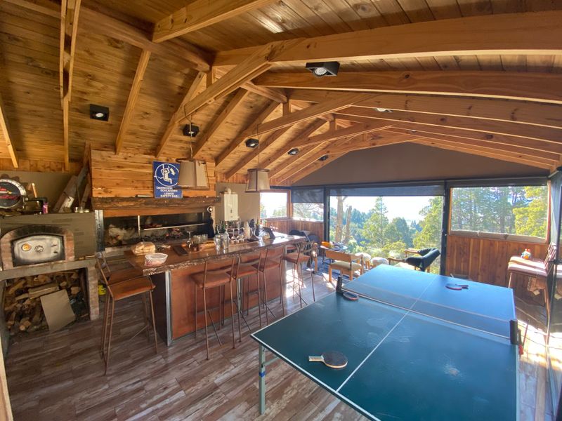 Código 8065-488 | Exclusiva casa en Venta con cuidado diseño en Barrio Handell, construida sobre un terreno de 2600m2 con una superficie cubierta de 320m2 se desarrolla esta magnifica propiedad para disfrutar de la montaña. , en la Planta baja se encuentra el living muy luminoso con amplios ventanales que dejan apreciar las hermosas vistas del entorno, el comedor y la cocina muy funcionales, el lavadero con despensa, el dormitorio principal en suite con vestidor, un segundo dormitorio muy amplio que permite una subdivisión también con baño completo, en la planta primer piso se encuentra un amplio Play room o tercer dormitorio con baño completo y baulera. En el exterior se encuentra bordeada por un cómodo deck que comunica a la pileta climatizada, el jacuzzi e invita a disfrutar del entorno. Quincho con parrilla, Horno de barro, Baño completo y Dormitorio de invitados/ Oficina. Cochera cubierta amplia para dos vehículos con taller en desnivel. Construcción tradicional de primera calidad , calefacción por losa radiante, Vidrios dobles en todas las aberturas. El Barrio Handell cuenta con todos los servicios subterraneos, es un barrio abierto sin expensas, esta ubicado a 7 minutos de supermercados, centro comercial, escuelas, establecimientos deportivos, cuenta con fácil acceso desde la ruta 40 a 4km del centro de la Ciudad. Contactanos para coordinar una visita al +54 9 2944487110